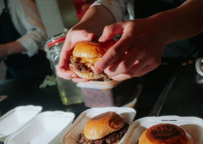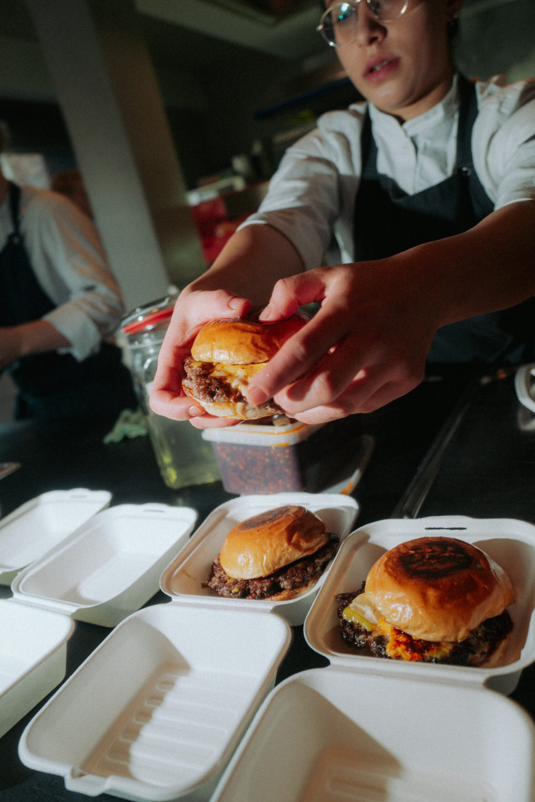 Für einen Tag verwandelte sich das Restaurant Klinker in einen urbanen Kiosk – lässig, unkompliziert und mit ordentlich Geschmack. Statt Fine Dining gabs den Kult-Burger „auf die Hand“ – frisch, saftig und mit jeder Menge Umami.